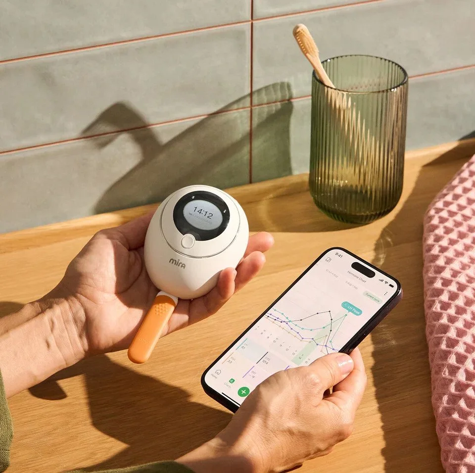 Mira is a hormone tracking system that measures your hormone levels directly through daily urine testing at home. Using small testing wands, it analyzes key reproductive hormones and syncs the results to an app on your phone.